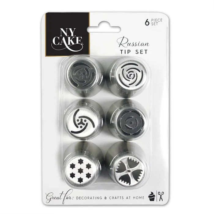 Precision-engineered stainless steel Russian piping tips designed for creating intricate floral patterns with minimal effort. This professional-grade 6-piece set includes essential nozzles for writing, stars, leaves, flowers, roses, and grass, complemented by a flower nail and standard coupler. The durable protective case ensures organized storage and longevity. Delivers bakery-quality results for decorators at any skill level.