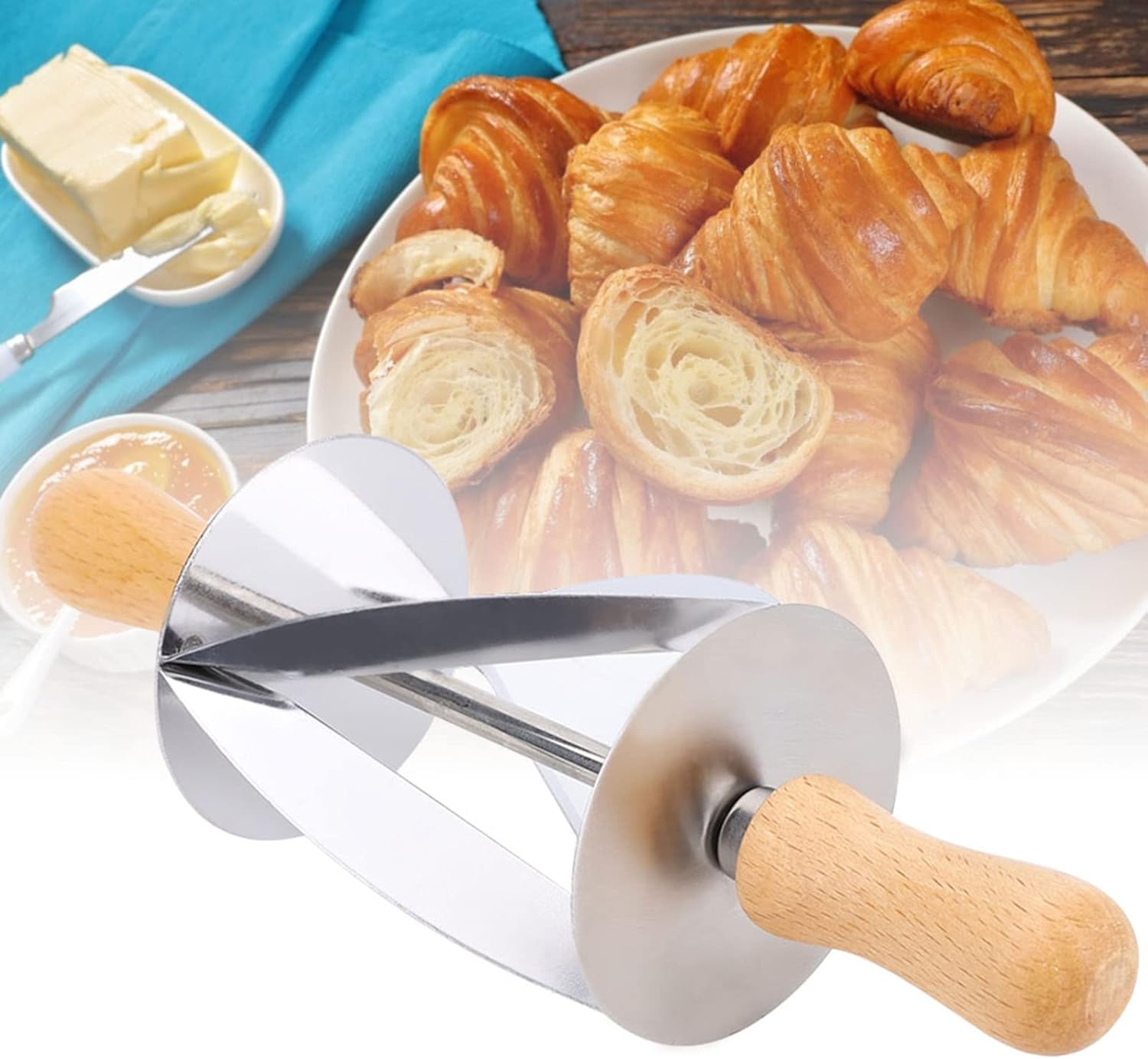 Precision-crafted stainless steel croissant cutter featuring a comfortable wood and stainless steel handle. The 6-inch blade ensures clean, consistent cuts for professional-quality croissants. Designed for durability and control, this tool delivers bakery-standard results with every use.