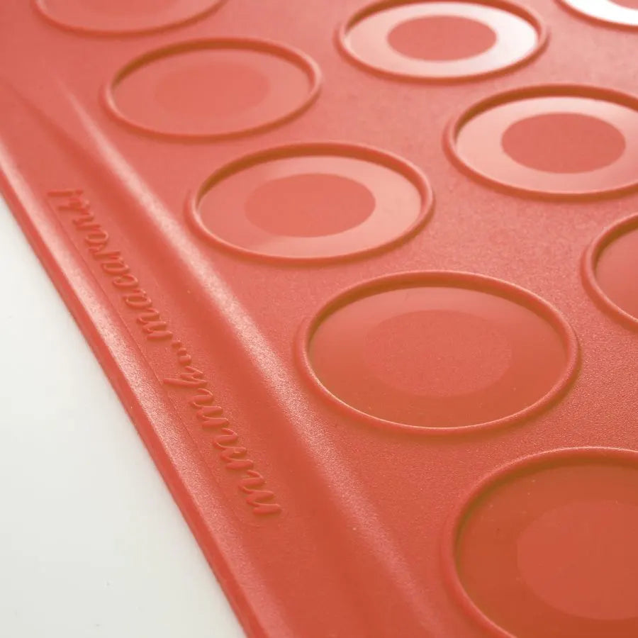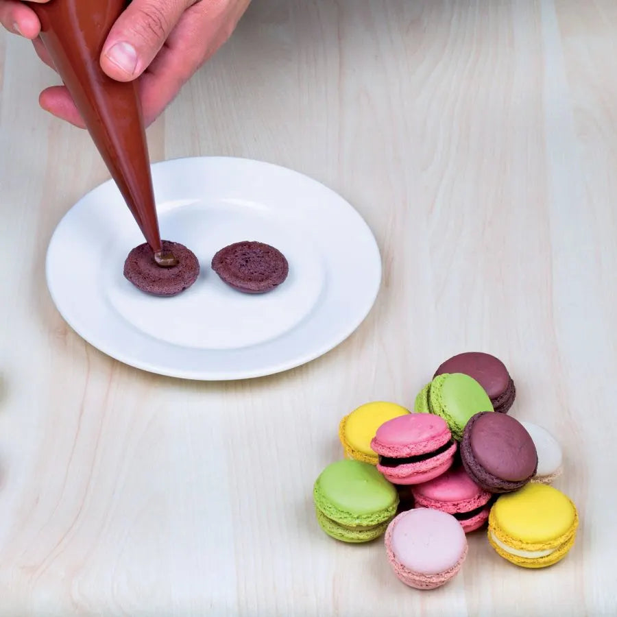 Introducing the Silikomart Macarons Mat from the Wonder Cakes' range. With 48 holes, this mat allows you to effortlessly make 24 macarons at a time. Get creative and use the included recipe and Liposoluble Powders to make variegated macarons. The perfect size for 35mm macarons, this 300 x 400 mm mat is only 1.5 mm thick. Elevate your baking game with this kit.