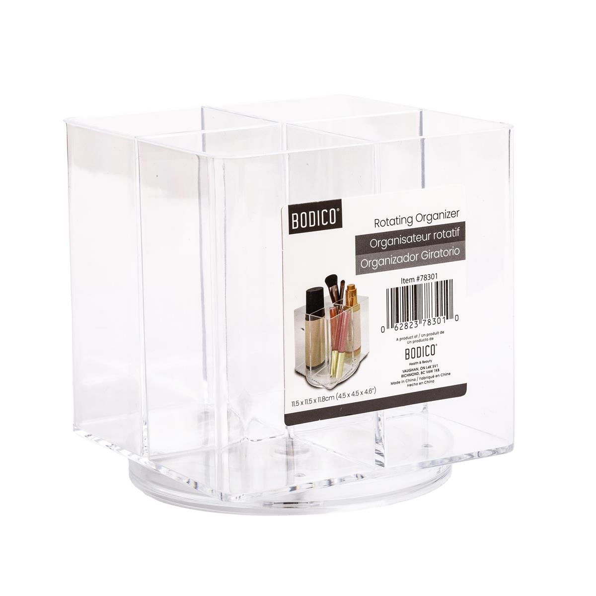 Maximize your storage efficiency with this transparent Bodico Rotating Organizer. Measuring a compact 5x5x5 inches, this versatile organizer features a smooth rotating base for easy access to all contents. Perfect for organizing cosmetics, office supplies, or kitchen essentials while maintaining visual access to everything inside. The durable construction ensures long-lasting functionality in any space.