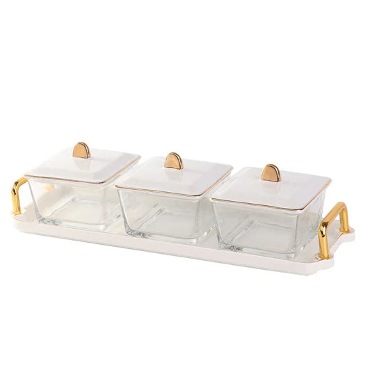 Elevate your entertaining with these sophisticated dip bowls, where refined design meets practical functionality. Crafted from premium thick glass with a sleek porcelain lid, each piece maintains optimal freshness while adding understated elegance to your table. The generous 4.3" x 13.8" x 3.5" dimensions accommodate generous portions, while the included set of three ensures you're prepared for any gathering. Available in two distinguished color options to complement your décor. Perfect for the discerning host who values both aesthetics and quality.