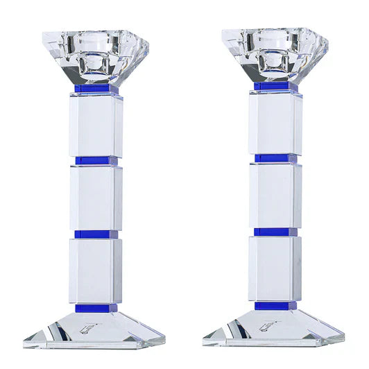 Elevate your home decor with this set of 2 Blue Crystal Candlesticks. Made from high-quality crystal, these 10" square candlesticks add a touch of elegance to any room. Their unique blue color will make them a standout piece on your dining table or mantel. Sparkle and sophistication await.