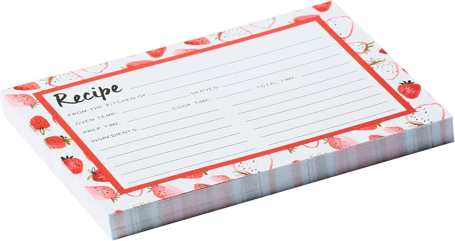 Enhance your recipe collection with C.R. Gibson Strawberry Fields Recipe Cards. Measuring 4" W x 6" L and double-sided, these cards feature a charming strawberry design and plenty of space to jot down your favorite recipes. With 40 cards included, this set is a must-have for any cooking enthusiast.