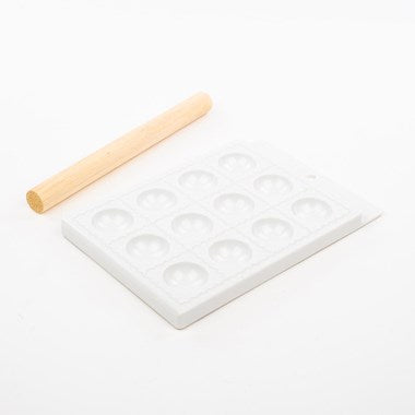 Josef Strauss Gourmet Ravioli Maker features a white mould and a wooden press that allows you to make and create your very own ravioli from scratch right in your own home!
