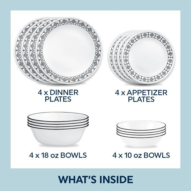 This Corelle Black Classic Cusco Dinnerware Set offers a stylish and durable set of 16 pieces that are perfect for any occasion. Made from Corelle's patented triple-layer strong glass, these dishes are resistant to chips and breaks, making them a reliable choice for everyday use. With a classic black design, they are versatile enough to complement any table setting and are dishwasher safe for easy cleaning. Elevate your dining experience with this quality dinnerware set.
