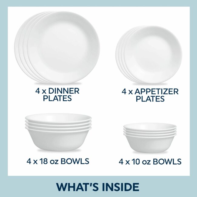 The Corelle White Classic Frost Dinnerware Set is a durable and stylish addition to your dinner table. With 16 pieces, this set includes everything you need for a complete dining experience. Made from Corelle's unique material, these dishes are chip and break-resistant, making them perfect for everyday use. Experience the benefits of Corelle's long-lasting quality and classic design.