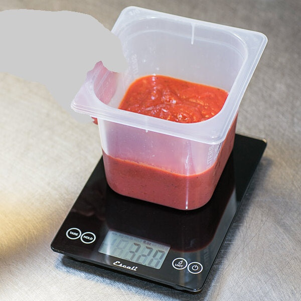 Meet the Escali Black Glass Digital Scale, the epitome of elegance and convenience. Its touch-sensitive smooth glass surface is not only reliable but also easy to clean. With an easy-to-read digital display, a tare button for accurate measurements, and automatic shut-off to conserve battery life, this scale is a must-have in any luxurious kitchen.