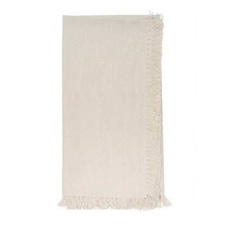 Crafted from premium combed yarns, this oversized napkin delivers exceptional softness with a refined fringe finish that elevates any table setting. At 20" x 20", it offers generous coverage for both formal dining and casual meals. The natural beige tone complements any décor while maintaining a sophisticated aesthetic. Machine washable for effortless care, this versatile piece transitions seamlessly from everyday use to special occasions, making it an essential addition to your table linens collection.