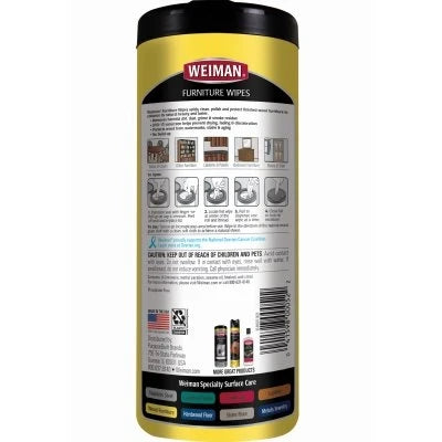 Introducing Weiman Furniture Wipes - your go-to solution for effortlessly cleansing dust, dirt, grime, and smoke residue. Formulated with UVX-15 sunscreen, these wipes protect wood from sun damage, preserving its natural beauty. With regular use, your furniture, paneling, and antiques will maintain their luster and shine.