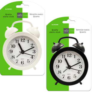 This Quarz Alarm Clock is an essential item for any household. The sleek black design adds a touch of style to any room, while the hour and alarm functions provide convenience and organization. With an easy on/off mode and requiring only 1 AA battery (not included), this clock is both efficient and reliable. Available in classic black and white.