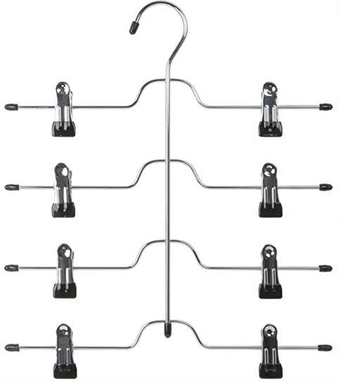 Organize your closet with our Black Metal Skirt Hanger. With 4 tiers, this hanger maximizes space while keeping your skirts wrinkle-free. Made of sturdy metal, it provides long-lasting durability. Keep your wardrobe neat and structured with this versatile hanger.