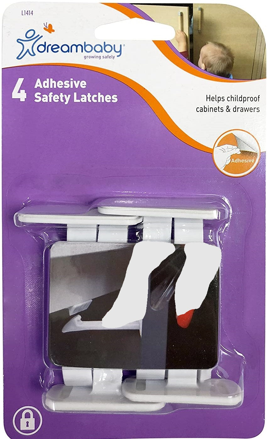 White Adhesive Safety Latches For Drawers & Cabinets 4pc