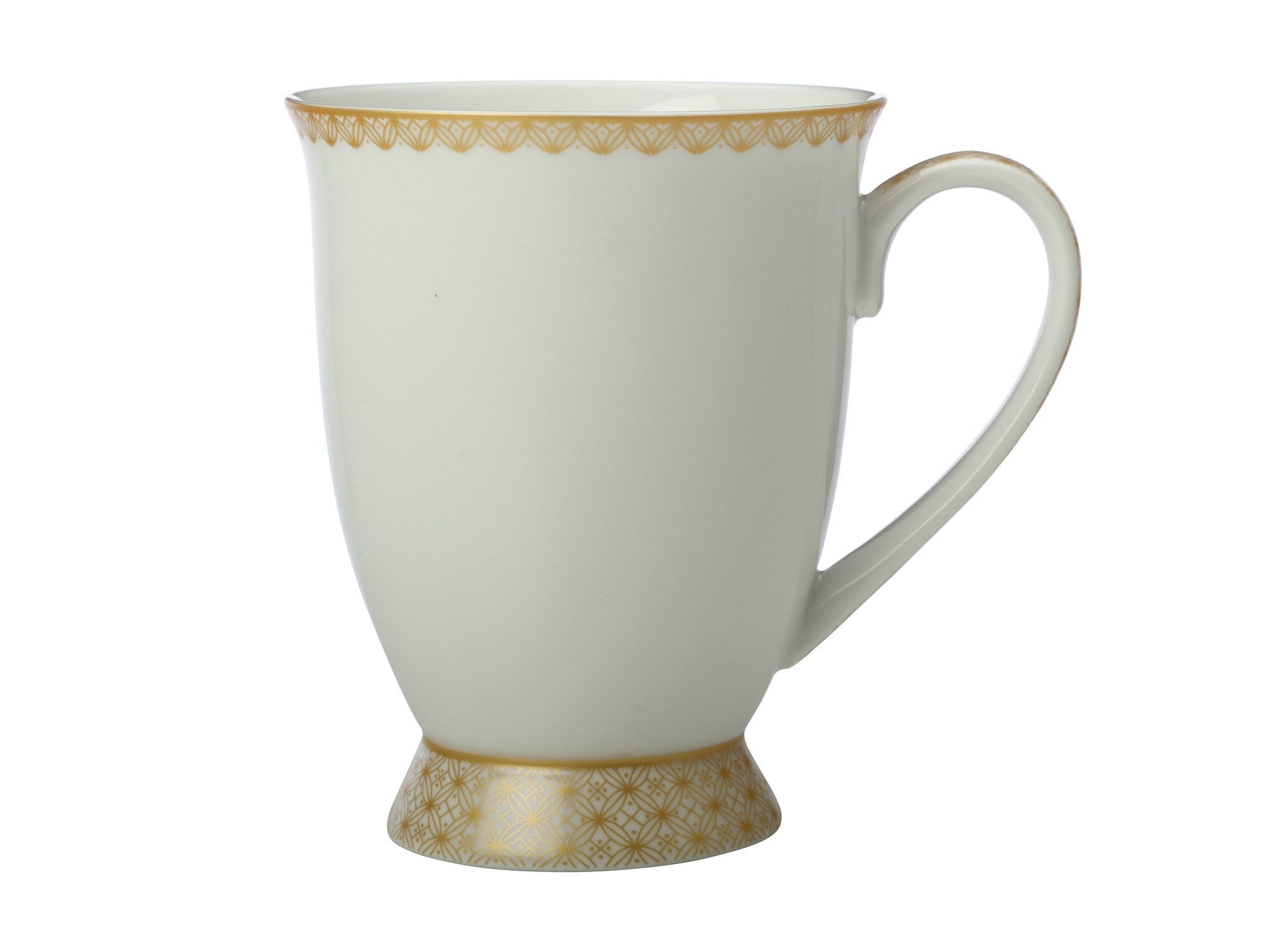 The Teas & C's Classic collection features solid color porcelain teaware in a sleek and glossy glaze. The 12oz gold mug is both microwave and dishwasher safe, making it a practical yet classic addition to your collection.