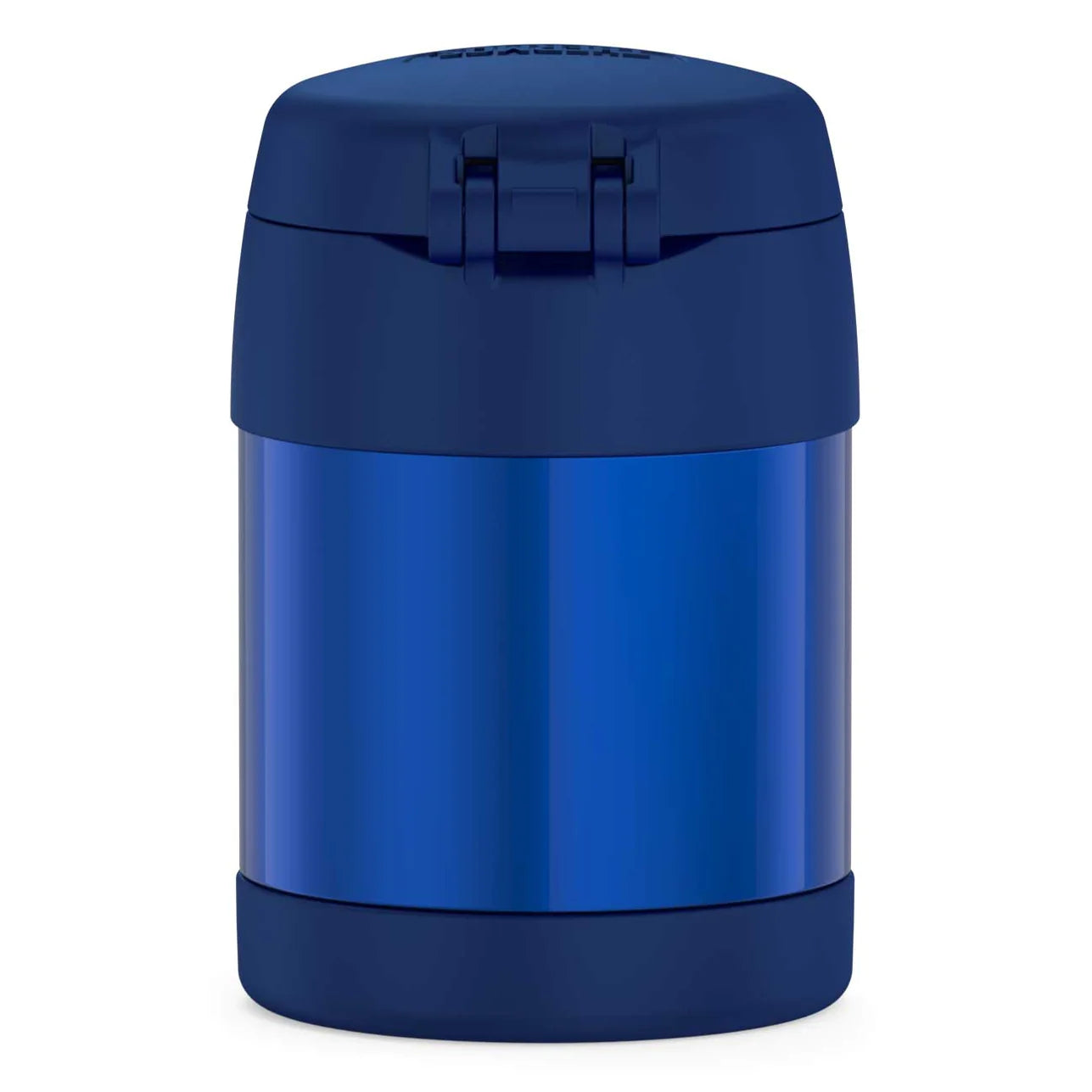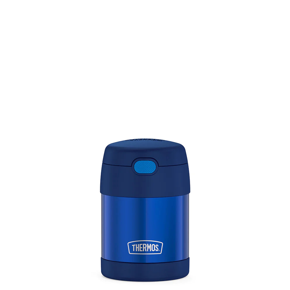 The 10oz FUNtainer® Food Jar from Thermos® brand is vacuum insulated to keep hot foods hot and cold foods cold-and since it's designed for kids it's also colorful and fun. Send them to school with their favorite soup so they can enjoy it fresh and hot at lunch time. If they're in the mood for a cold snack, pack it up with yogurt and berries, or apples and peanut butter. The FUNtainer food jar is light weight and compact with a push button lid so it’s easy to carry and open. To clean, you can pop your FUNtainer food jar in the dishwasher; however washing by hand is recommended. Spoon included. Customize your FUNtainer food jar with adhesive name labels that can be firmly adhered to any FUNtainer product. Two peel and stick labels are included inside this FUNtainer product. Fun for the kids, and easy for the parents. Just write, peel and stick!