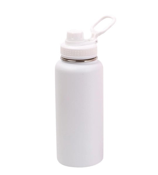 PURE White Thermal Stainless Steel Bottle keeps beverages at your desired temperature for hours. This 1-liter capacity makes it ideal for daily hydration, whether you're commuting, working, or traveling. The double-wall insulation maintains hot drinks hot and cold drinks cold, while the durable stainless steel construction resists dents and corrosion. Lightweight yet robust, it fits standard cup holders and features a secure closure to prevent leaks. Perfect for professionals and active individuals who demand reliable temperature retention.