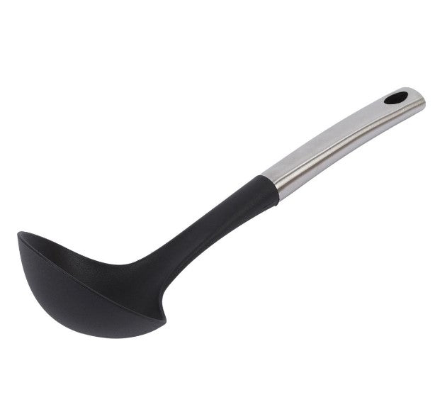 The L. Gourmet Black Soup Ladle is a must-have for any kitchen. Its sleek 13" design makes it perfect for serving soups and stews with ease. Made with high-quality materials, this ladle is both durable and stylish. Say goodbye to messy spills and hello to effortless serving with the L. Gourmet Black Soup Ladle.