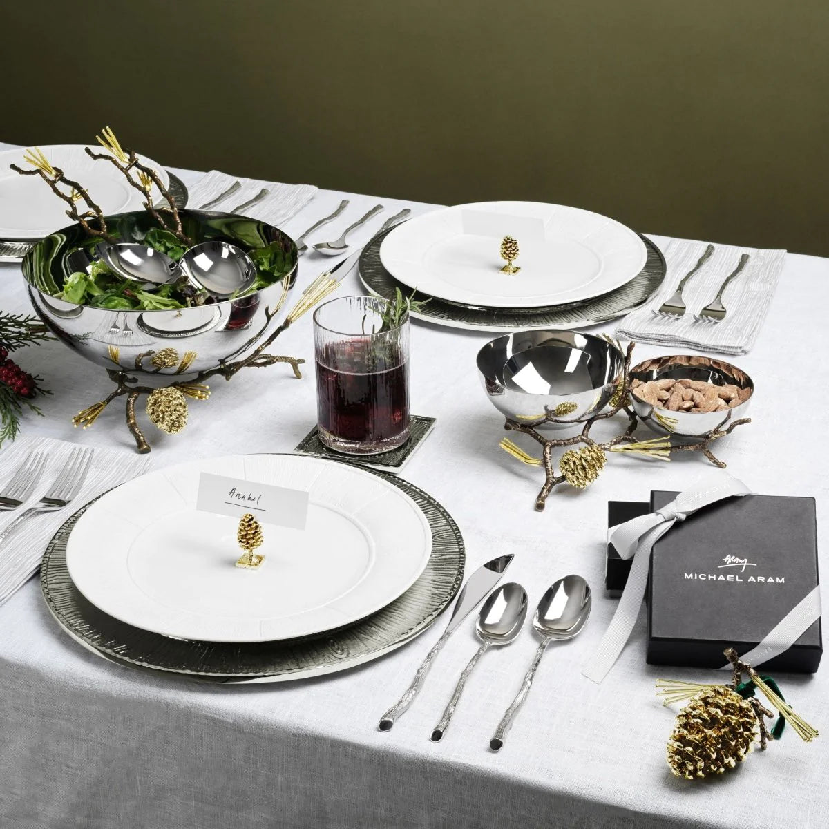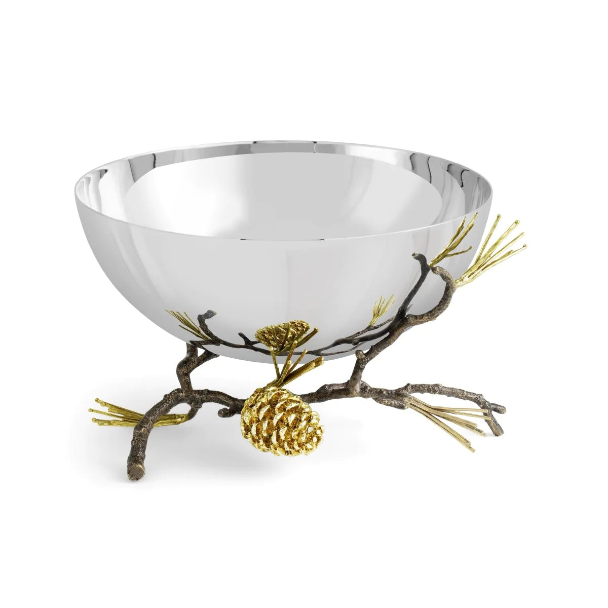 The Michael Aram Pine Serving Bowl combines the natural beauty of pinecones with functional design. Crafted from durable materials, this bowl measures 10.5" L x 9.5" W x 5.5" H and holds 52 oz. Perfect for holiday gatherings and beyond, it adds a touch of festive charm to any table.