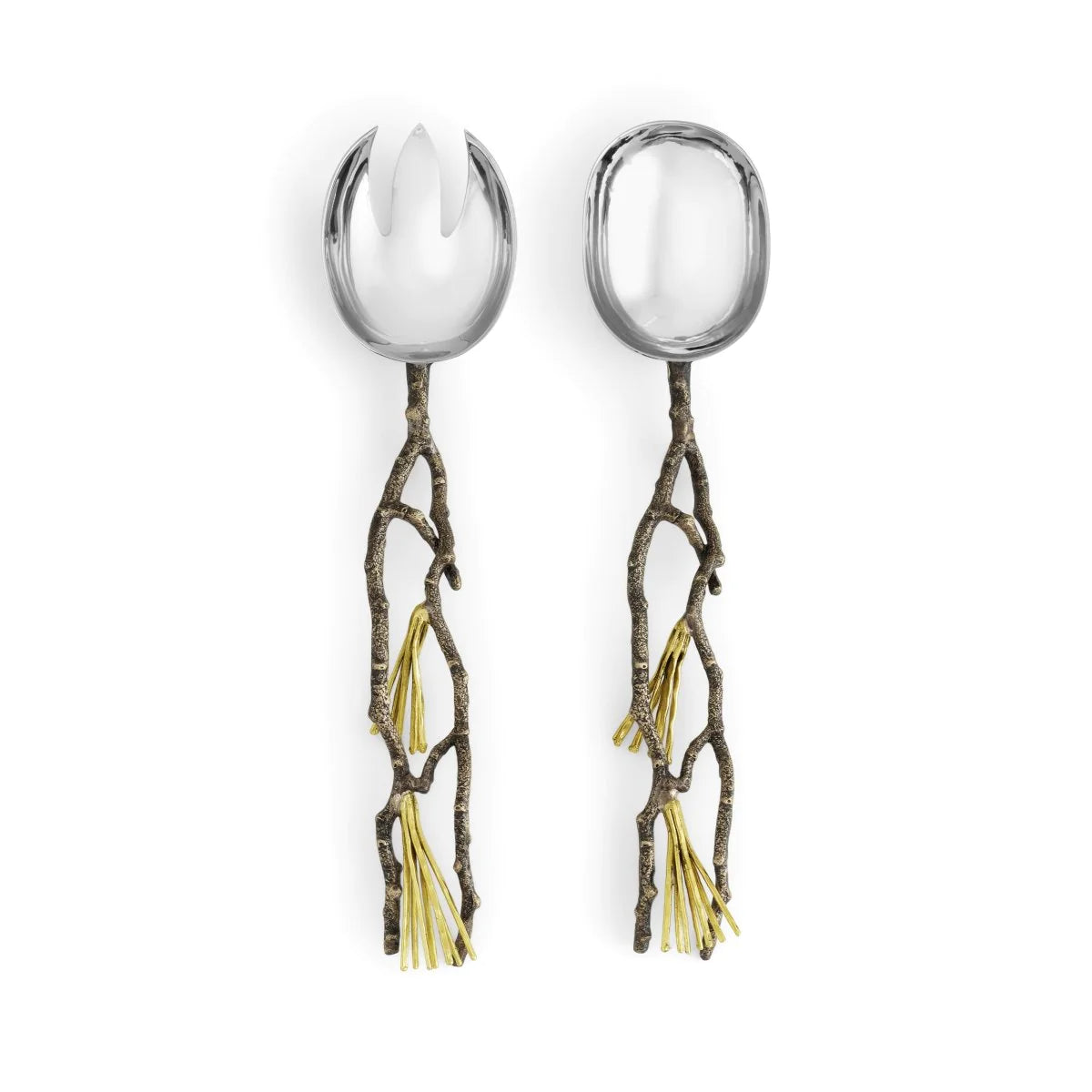 Add a touch of holiday magic to your entertaining with the Michael Aram Pine Cone Serving Set. With its elegant pine cone structure and fragrant conifer scent, this 2pc set is perfect for festive gatherings. Crafted with precision and care, each piece measures 11" L. Make your home feel warm and inviting with this beautifully designed serving set.