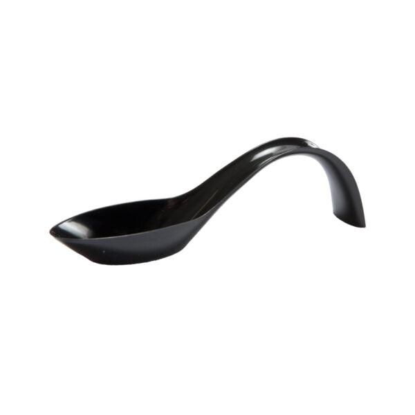 Introducing the MiniWare Black Crescent Spoon, measuring at 5 inches and comes in a set of 24 pieces. Made for easy gripping and serving, these spoons are perfect for any mealtime. Their sleek design adds a touch of elegance to your table setting. Upgrade your dining experience today.