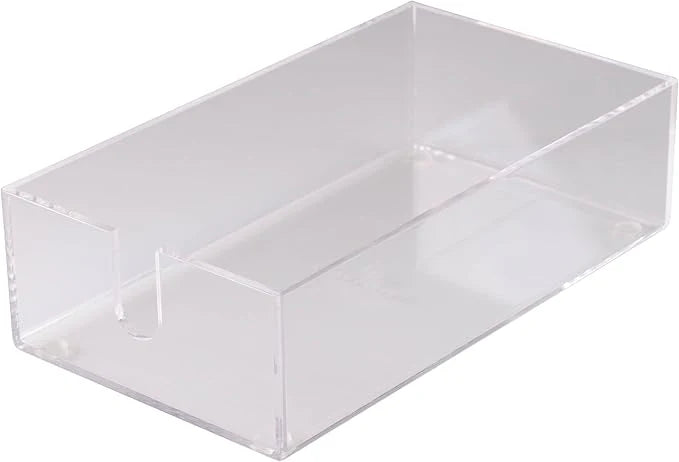 The Clear Acrylic Guest Napkin Holder by LUXE PARTY combines sleek design with practical functionality. Measuring 8.74" deep, 5" wide, and 2.44" high, it offers a compact yet spacious solution to keep napkins neatly organized and easily accessible. Its transparent acrylic construction ensures it complements any table setting or décor style, making it ideal for both casual gatherings and formal events. Durable and easy to clean, this napkin holder enhances guest convenience while maintaining a polished presentation.