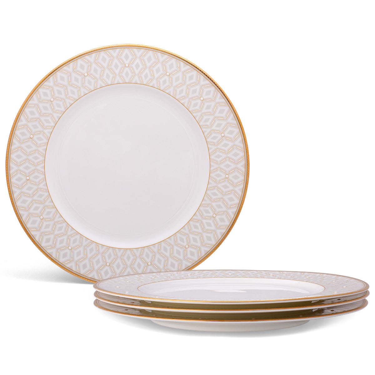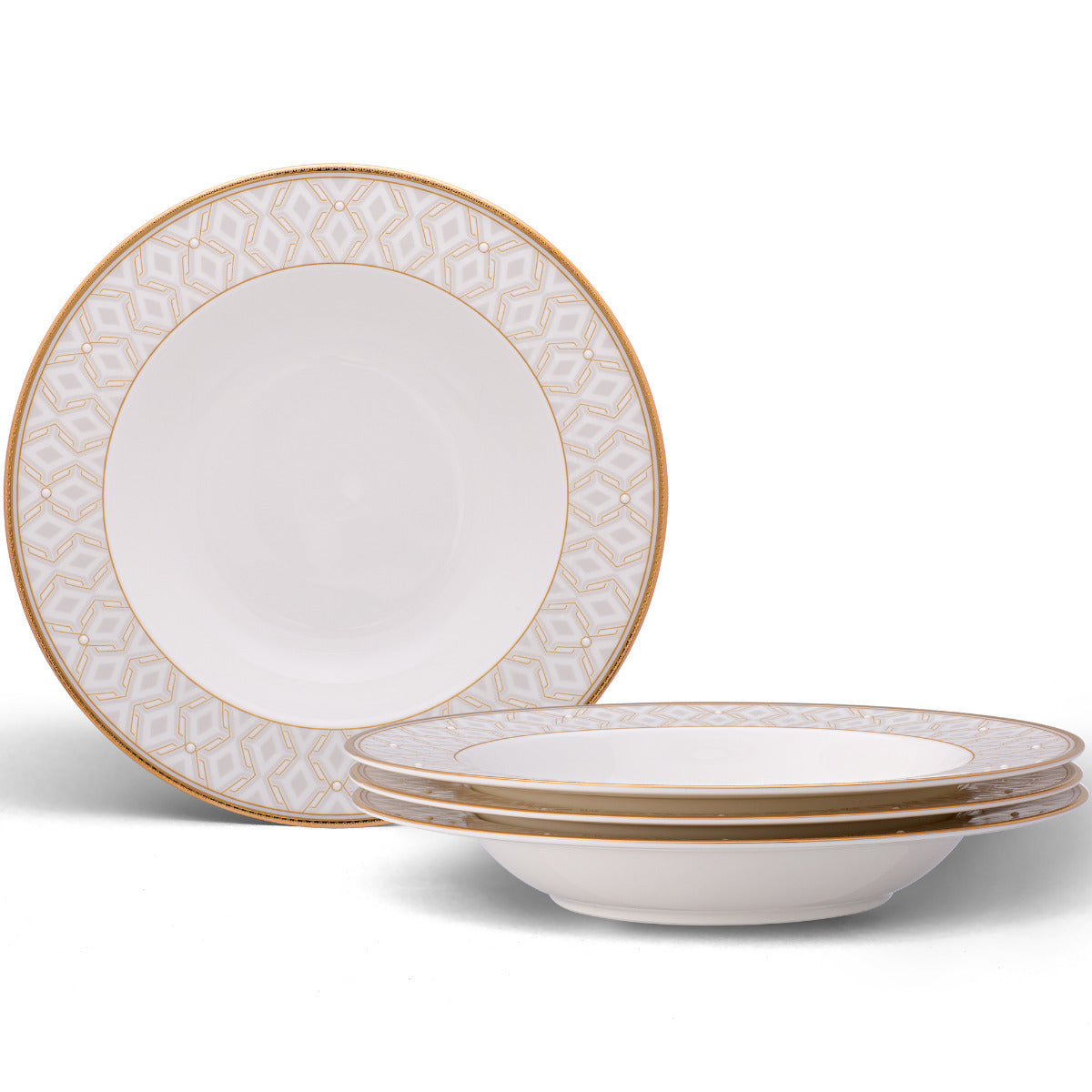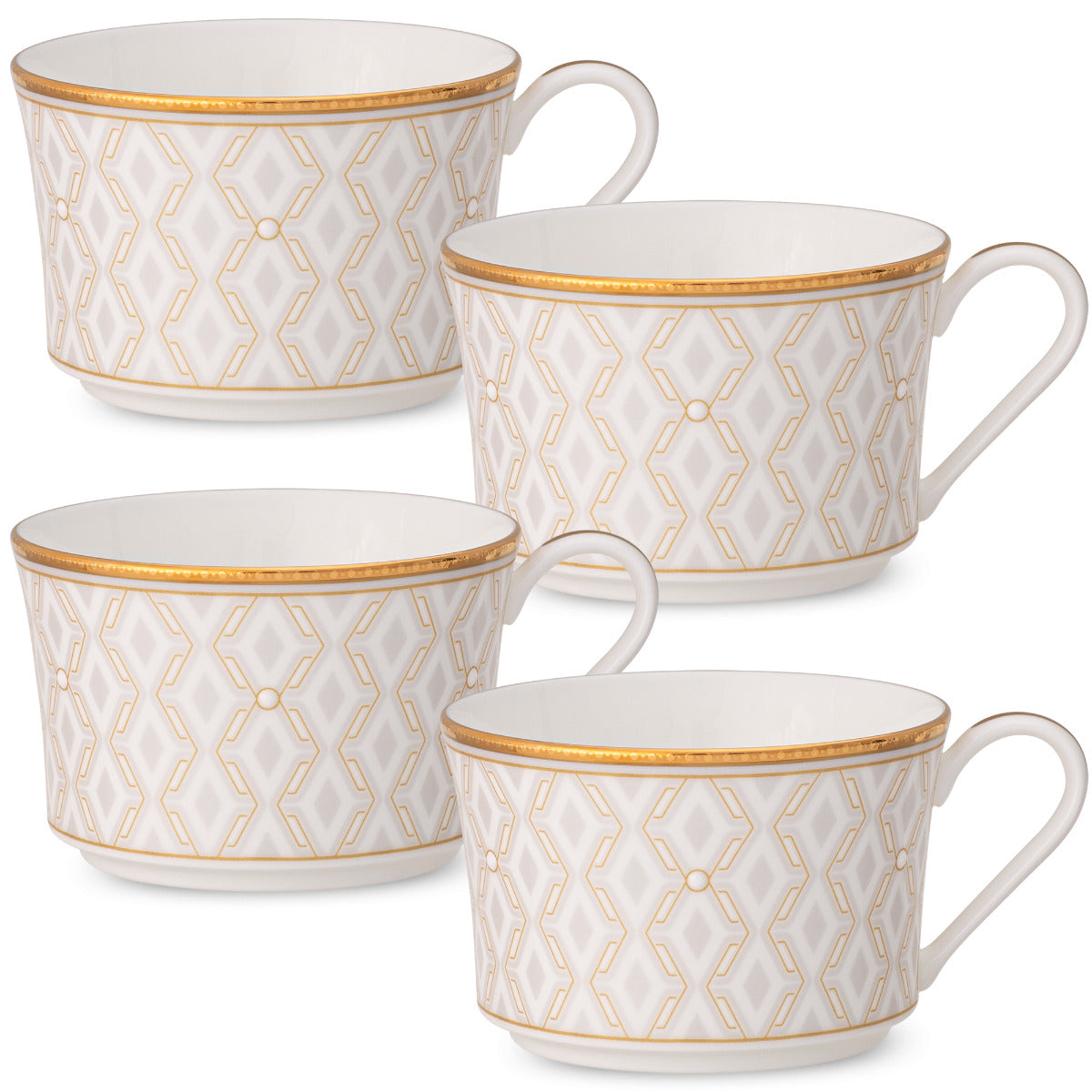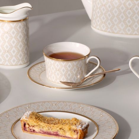 Noble Pearl is a stunning, strongly-geometric dinnerware pattern on bone china. The cross-hatch design combines grey and white shades to create dimensional interest. The deep red color paired with elegant gold banding brings a sense of elegance and dramatic ambience. Noble Pearl offers traditional place setting components, a modern 12-piece set, and additional items to complete the table. Noble Pearl is suitable for everyday use and is dishwasher safe.