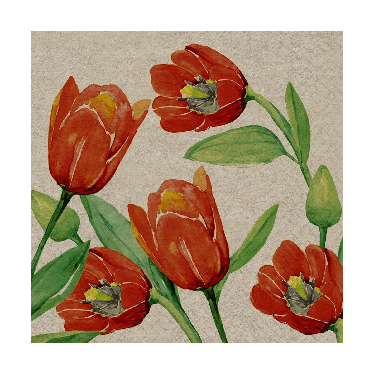 Experience the elegance of Red Natural Tulips Luncheon Napkins from Paper + Design's premium NATURALS collection. These 5" 2-ply napkins feature stunning tulip designs on eco-conscious materials—100% recycled tissue combined with real flax fibers. Sustainably produced in Germany, they reflect the region's flax tradition while offering both beauty and environmental responsibility. 20 pieces per package.