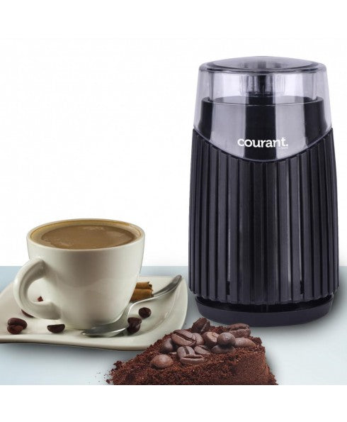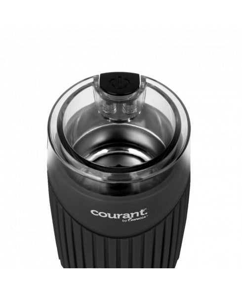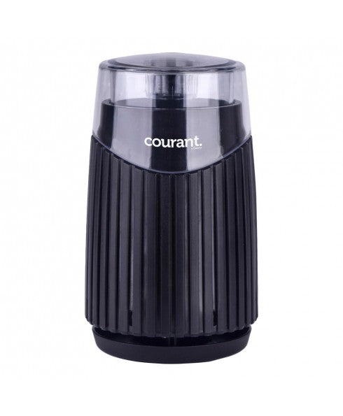 Introducing the Courant Electric Coffee Mill, the perfect addition to any coffee lover's kitchen. With a quick and efficient grind time of only 60 seconds, this mill will provide rich and consistent results every time. Its stainless steel blades and sturdy base make it durable and reliable for daily use. Choose from a variety of colors to match any decor. Elevate your morning routine and effortlessly grind your favorite spices with this impeccable machine.