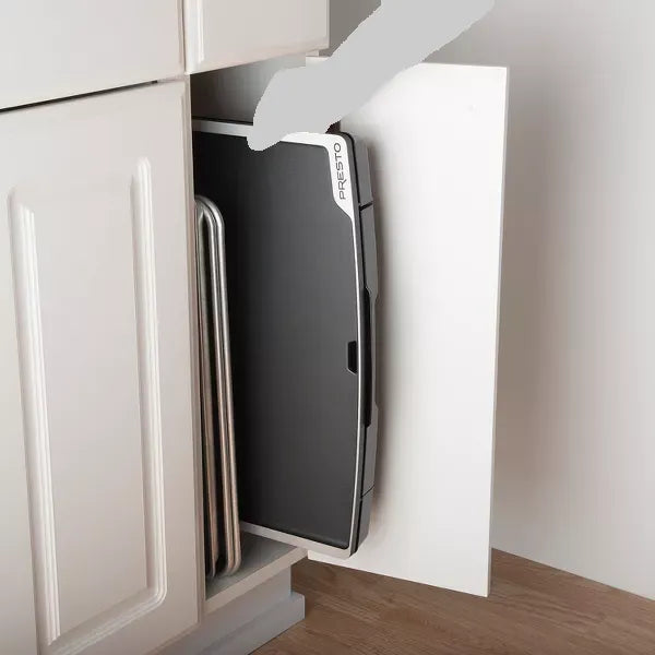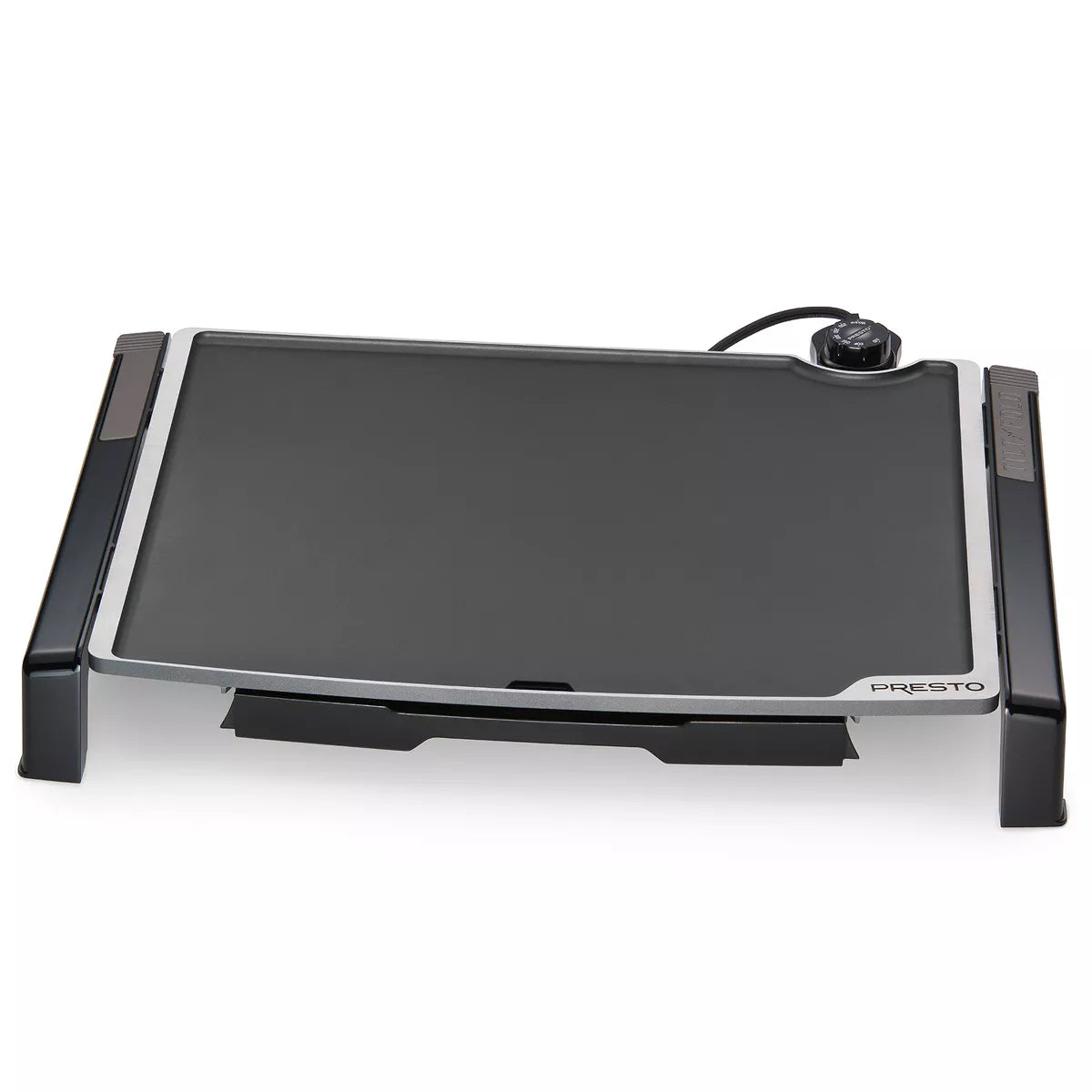 Expertly cook meals with the Presto 19" Tilt'n Fold Electric Griddle. Featuring a convenient tilt function, this griddle allows for easy draining of excess fat and grease. Its compact design also makes it perfect for spaces with limited counter space. Cook efficiently and cleanly with this versatile electric griddle.