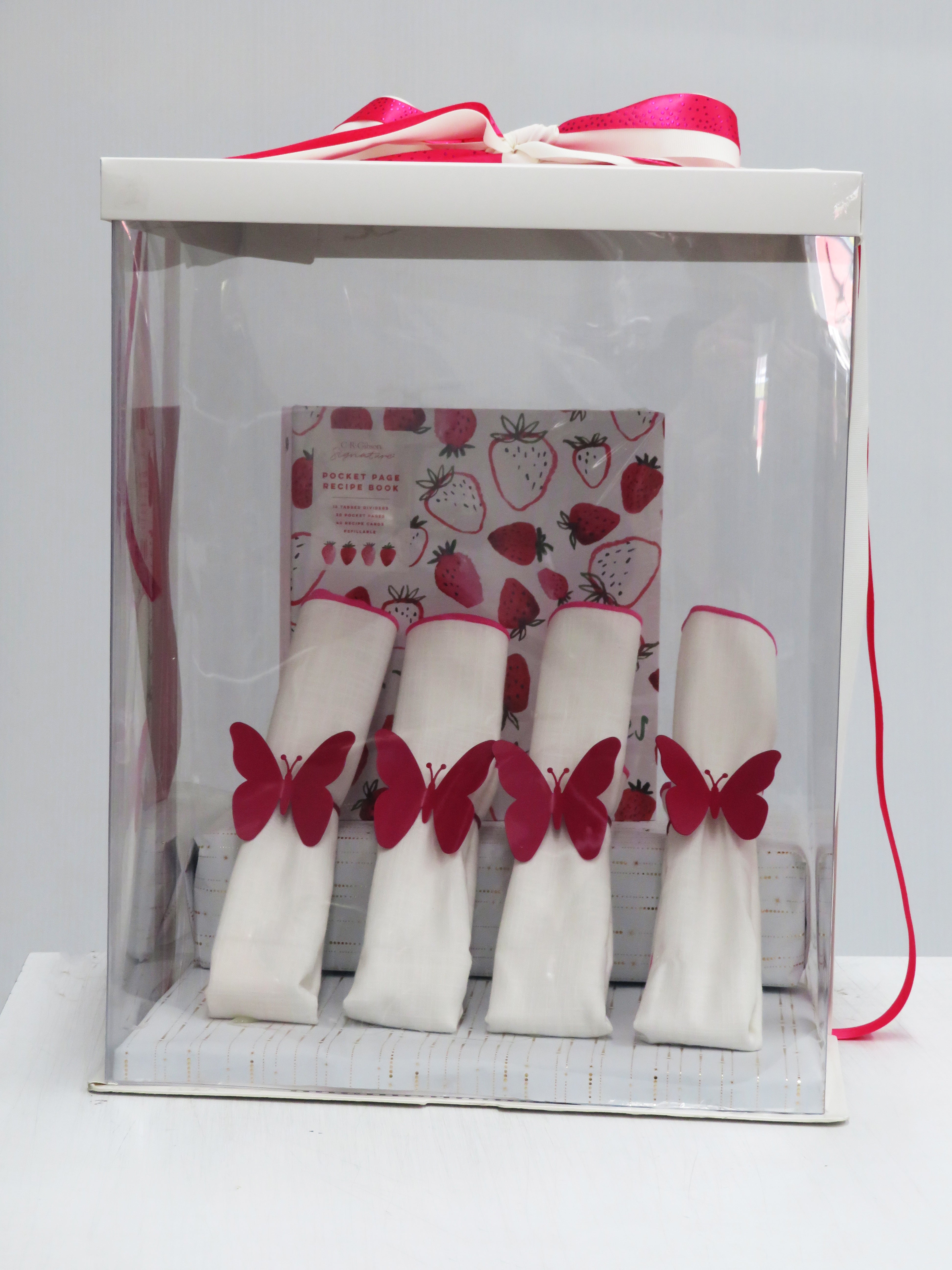 Gift Setup Recipe Binder 4 Cloth Napkins 4 Napkin Rings is backordered and will ship as soon as it is back in stock.