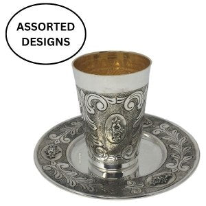 Experience a taste of tradition with the Moreshet Silver Dipped Kiddush Cup and Matching Saucer. Crafted with 999 silver dip, the cup and saucer feature elegant designs to enhance your Shabbat and holiday celebrations. Elevate your religious ceremonies with this stunning, single set.