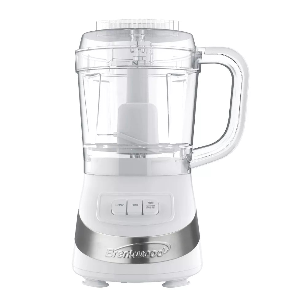 Indulge in gourmet cooking with the powerful and sleek Brentwood White Food Processor. Featuring sharp stainless steel blades, it effortlessly chops veggies and creates delicious homemade dips and salsas. The safety lock lid and anti-slip suction feet ensure a safe and secure experience. Plus, it's compact and dishwasher safe for easy cleanup. Elevate your kitchen game today.