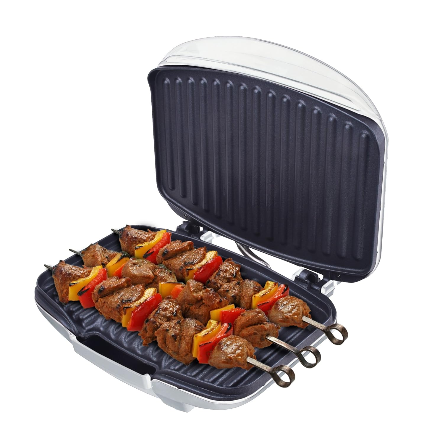 Transform your kitchen into a gourmet cafe with the Courant Grill Champ Panini Press. Its 4-slice design and 54 square inch cooking surface allow for versatile meal options. The non-stick coated plates and slide-out drip tray make for easy clean-up, while the floating hinge and upright storage option provide convenience.