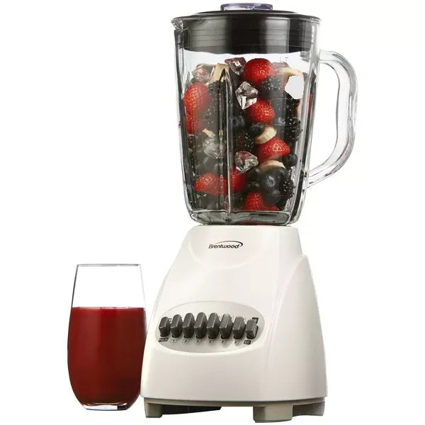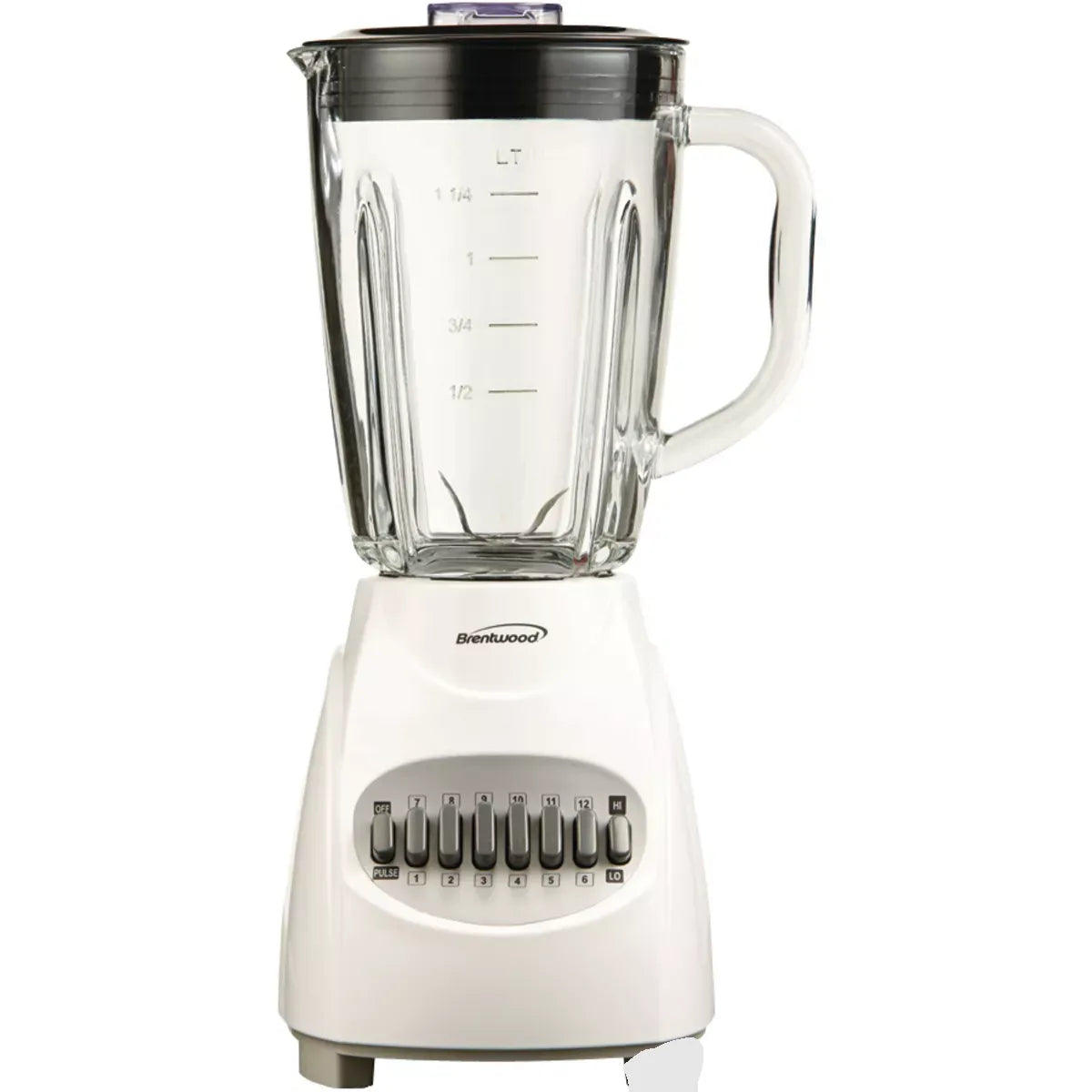 • The Brentwood Black 12 Speed Blender effortlessly crushes ice with its 350w motor and stainless steel blades. Choose from 12 speeds for perfectly blended smoothies, shakes, and protein drinks. The 42oz graduated glass jar with lid is BPA free and dishwasher safe. Cord storage ensures convenience and organization.