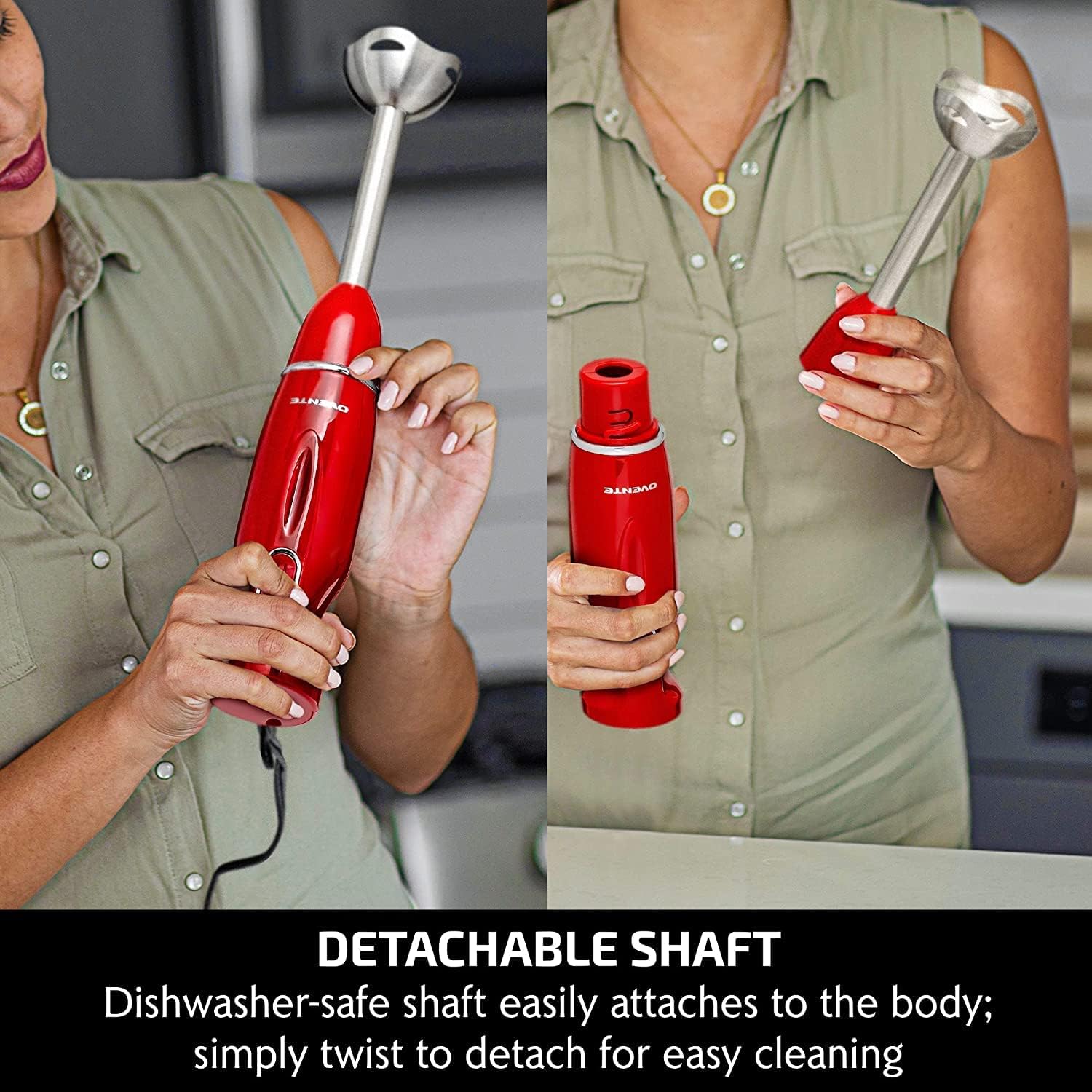 Upgrade your cooking game with the OVENTE Red Immersion Hand Blender. With a 300-watt motor and adjustable speed options, create healthy smoothies, pureed soups, and more quickly and effortlessly. Perfect for busy mornings or a quick, nutritious meal. Whip up happiness in the kitchen with this powerful immersion blender.