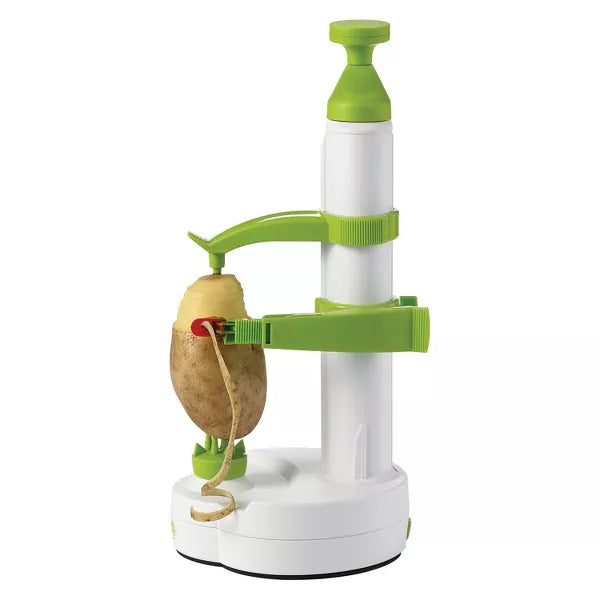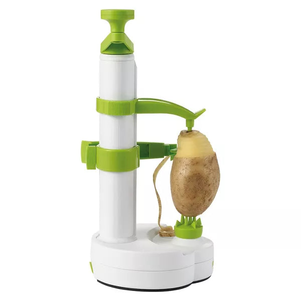The Rotato, the amazing new peeling machine from Starfrit, peels away skin from potatoes, fruits, and other vegetables in just seconds! It's so sensitive, it can even peel the skin off tomatoes! Now you can peel everything safely and without waste. Plop on a potato, peel it, and pare it in 10 seconds flat. Say Sayonara to potato skins! The Starfrit Manual Peeler quickly peels with the turn of the handle.
