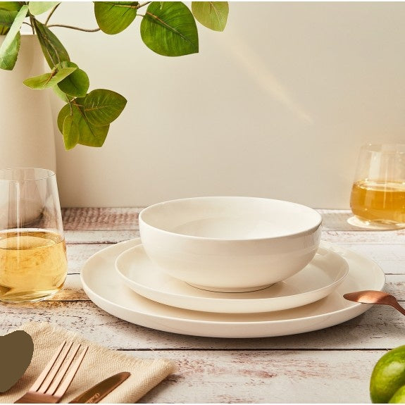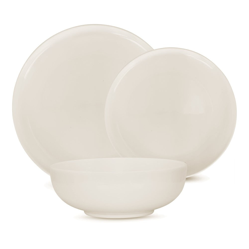 The ICM White Bistro Dinnerware Set merges traditional elegance with contemporary design through its understated profile and refined raised edges. This premium 12-piece porcelain collection includes 4 dinner plates, 4 salad plates, and 4 soup bowls, all featuring a versatile glossy white finish that pairs effortlessly with colored accessories and flatware. Crafted for durability and convenience, these pieces are both dishwasher and microwave safe, making them ideal for home kitchens, restaurants, and cafés alike.