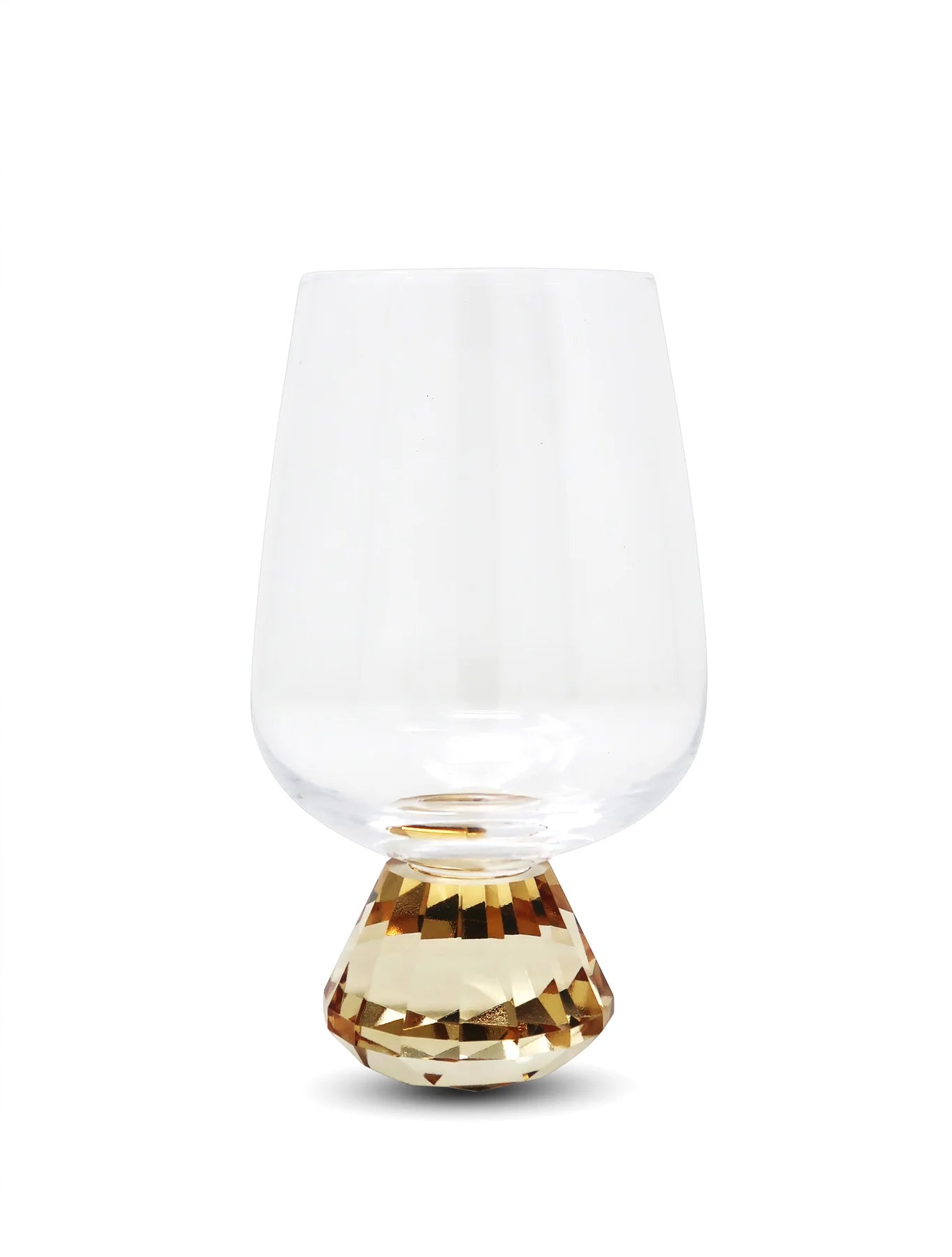 Enhance your wine drinking experience with this set of 6 glasses, each adorned with a refined diamond base. Exquisitely crafted for precision, these glasses elevate any gathering and add a touch of sophistication. Savor your preferred libations in luxurious style with these 2 stunning color options, available in a set of 6. Dimensions: 2.75" diameter x 6" height, with a capacity of 17.5 ounces.