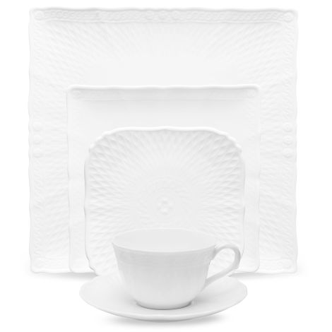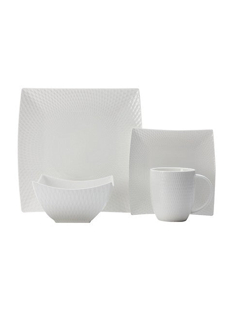 Trudeau White Mesh Square Fine Porcelain 16pc