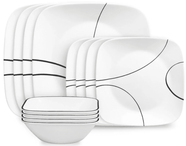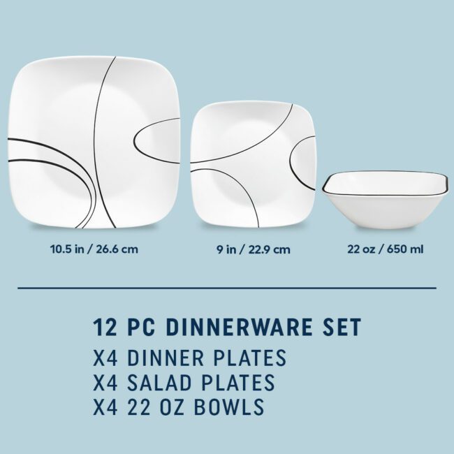 Corelle Black Simple Lines Dinnerware Set 12pc