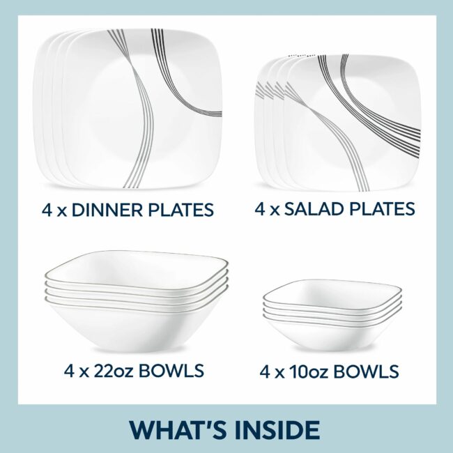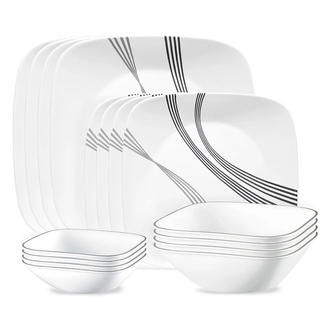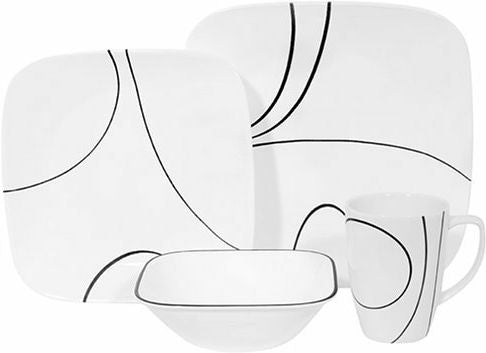 Corelle Black Square Urban Arc Dinnerware Set 16pc