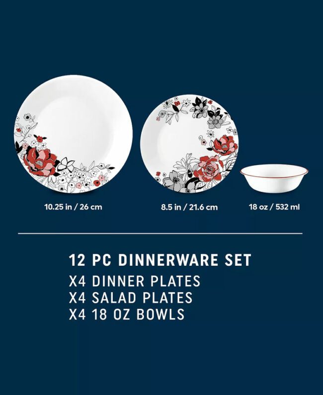 Corelle Red Chelsea Rose Dinnerware Set 12pc
