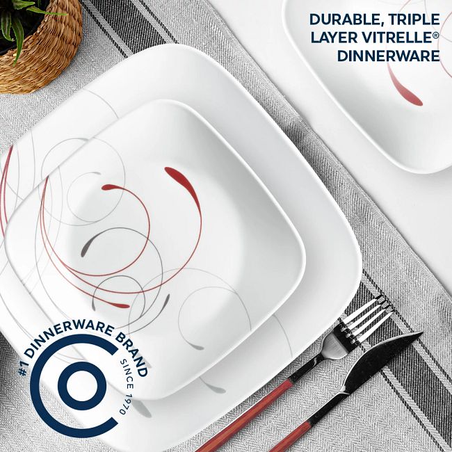 Corelle Red Splendor Square Dinnerware Set 12pc
