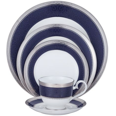Noritake Silver Cobalt Odessa Dinnerware Set 5pc