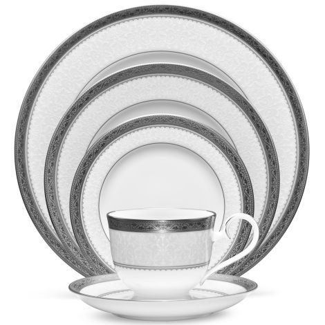 Noritake Silver Odessa Platinum Dinnerware Set 5pc