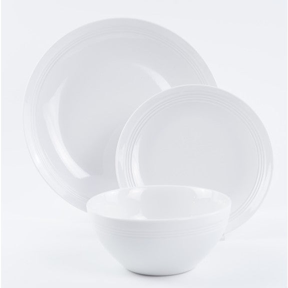 The White Luna Dinnerware Set is a versatile and elegant choice for any dining occasion. This 12-piece set includes 4 dinner plates, 4 salad plates, and 4 soup bowls, all made of premium porcelain. The simple design seamlessly blends with any décor, making it suitable for home kitchens, restaurants, and cafes. Plus, it is dishwasher and microwave safe for easy use and cleaning.