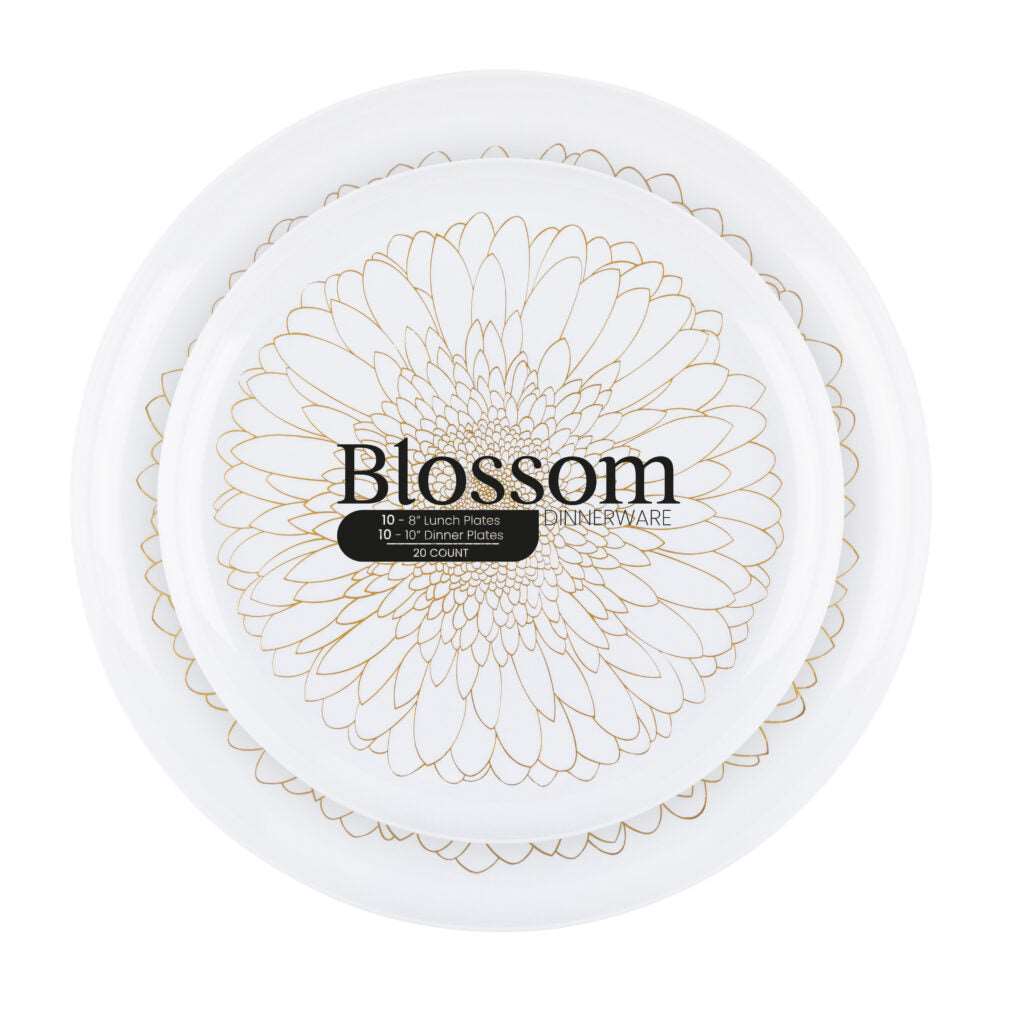 Blossom Plates White/Gold Combo 10" 8" 20pc