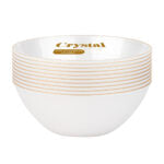 Introducing Crystal Design Gold Pearl Bowls, a set of 10 elegant 16oz bowls. Made with a stunning pearl design and plastic material, these bowls add a touch of sophistication to any table setting. Perfect for home use or special occasions, these bowls bring luxury to your dining experience.