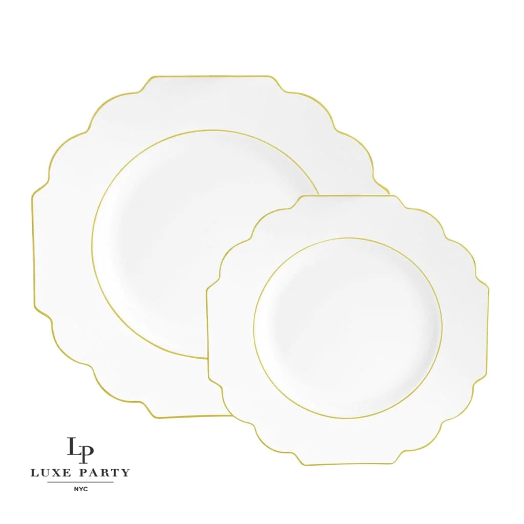 Scallop-edged | Gold-accented | Clear/Gold Salad Plates 8" in size for Appetizers, Desserts, and Dinners. These plates enhance any table with complementary hues of gold and clear.