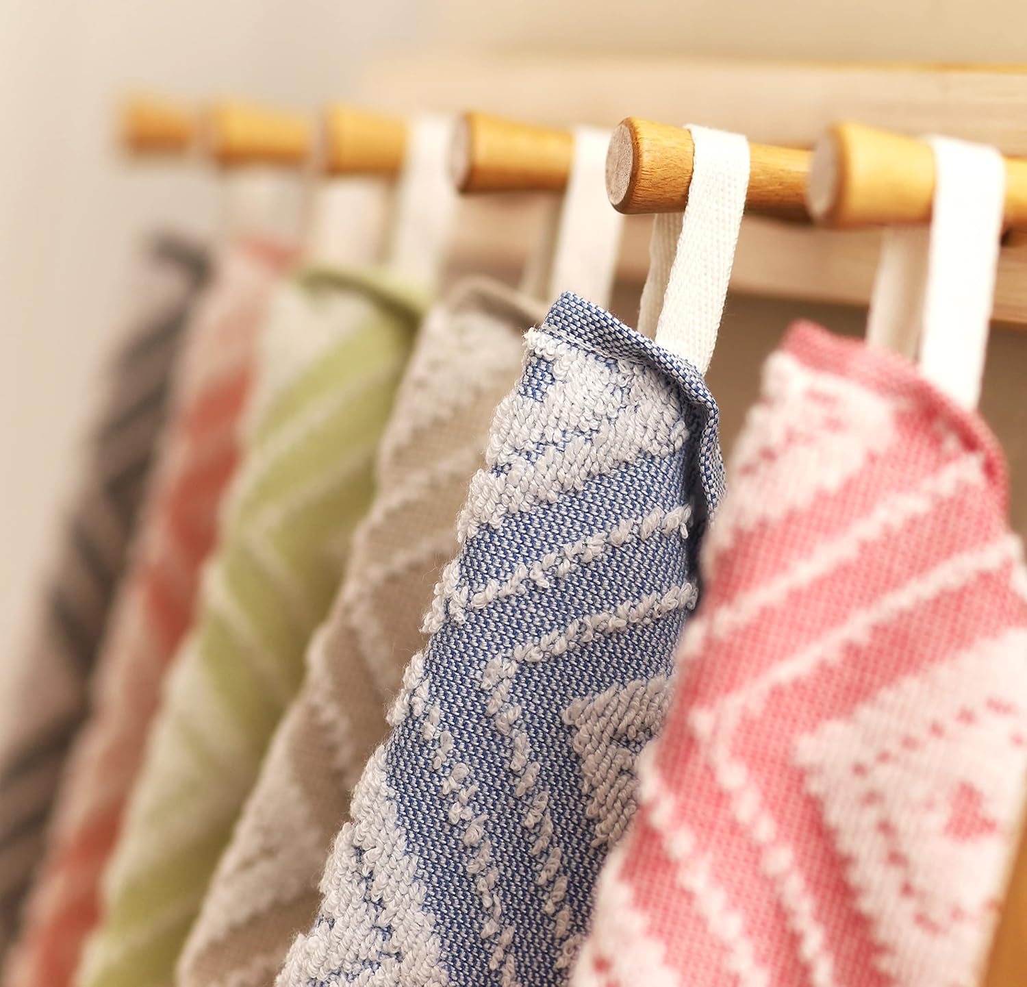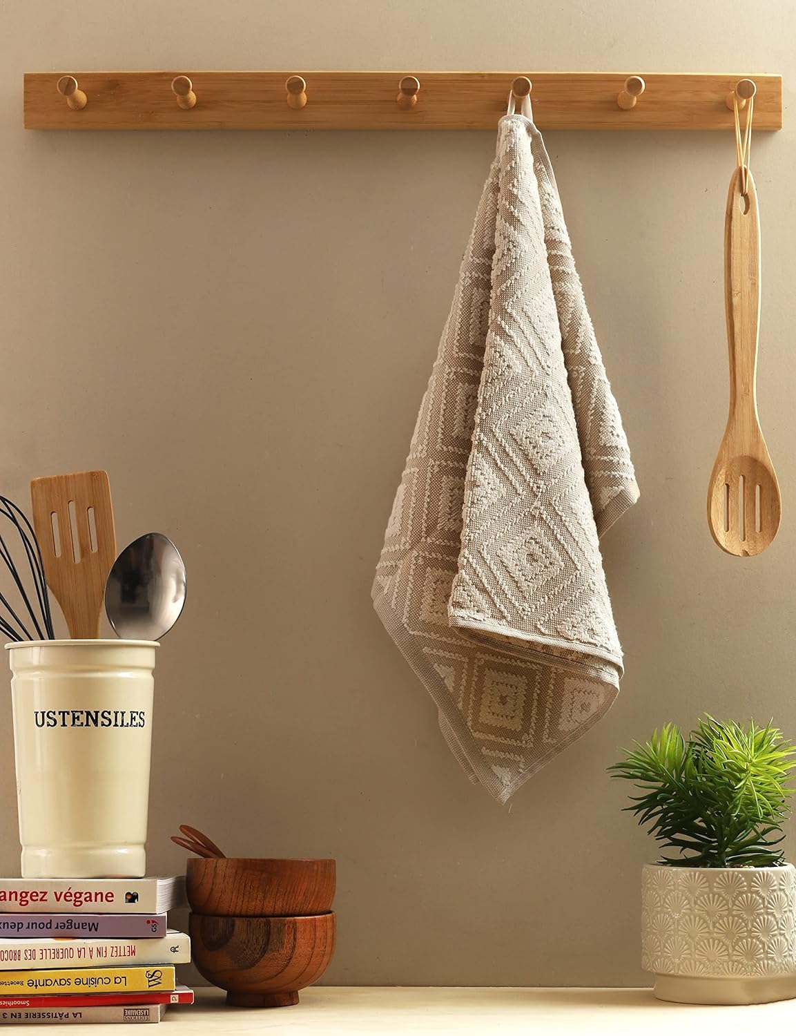 These Absorbent Dish Towels are made from 100% ring-spun cotton, providing a quick and streak-free drying experience. With a thick, 400 GSM design, these towels are highly absorbent and perfect for any kitchen. Measuring 16x25", the towels also feature a convenient hang hook for easy and elegant hanging. Proudly made in Portugal.
