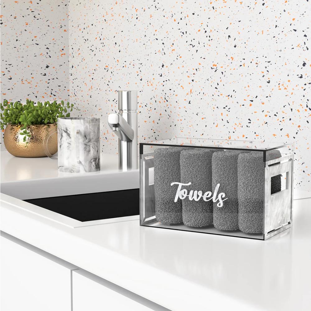 Introduce luxury into your home with the Feldart White Pearl Towel Box. The chic and modern acrylic design adds a touch of sophistication to any bathroom. With 8 plush and velvety soft towels included, this set is perfect for hosting guests or indulging in self-care. The magnetic lid adds convenience to this luxurious addition.